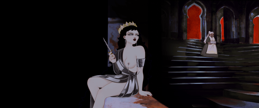 I was mainly responsible for art direction, designs, backgrounds, animated texture pipeline and I also did animation.